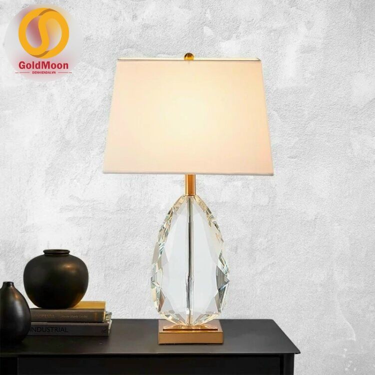 - Chất liệu: Thân pha lê, Chao vải