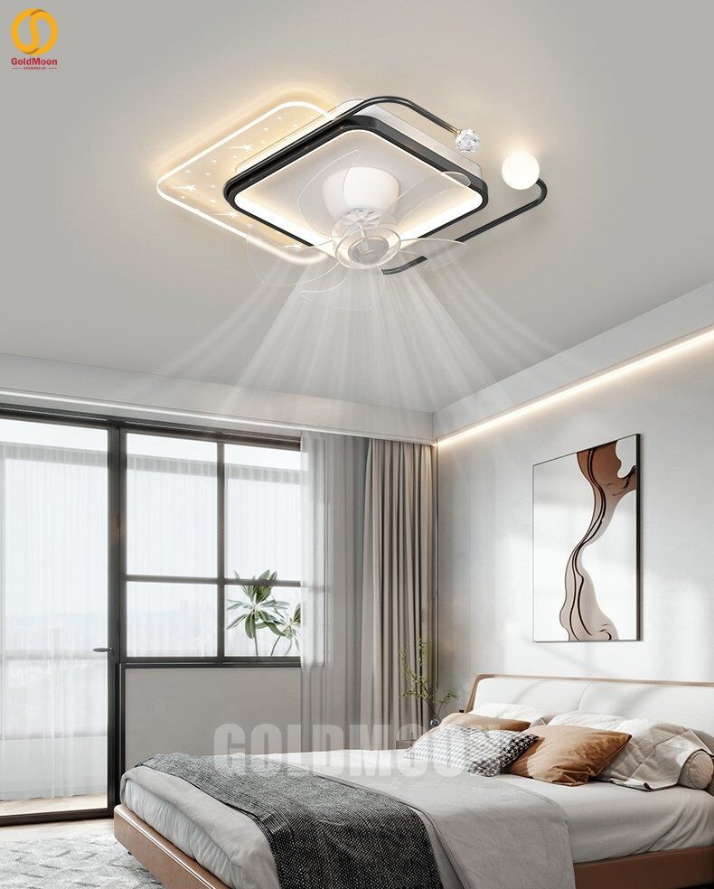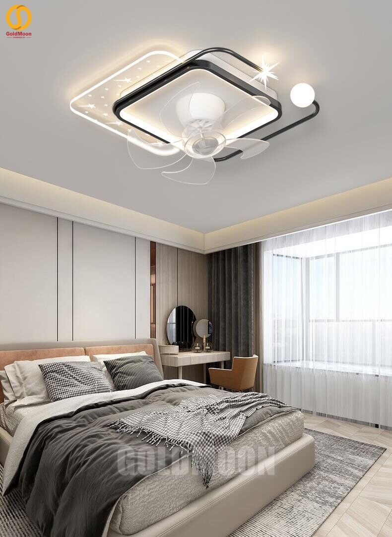 - Có điều khiển từ xa và APP điện thoại: tăng chỉnh ánh sáng, quạt 6 cấp gió có đổi chiều.